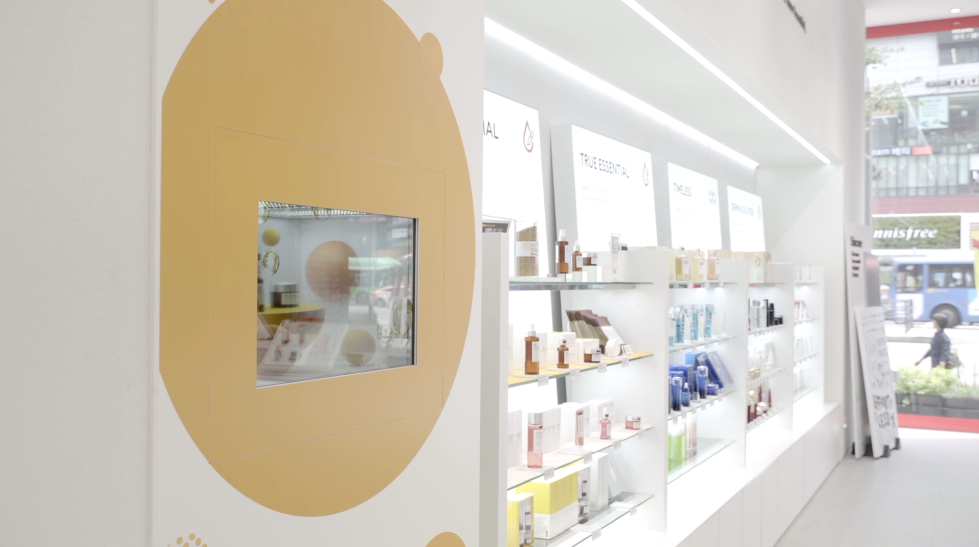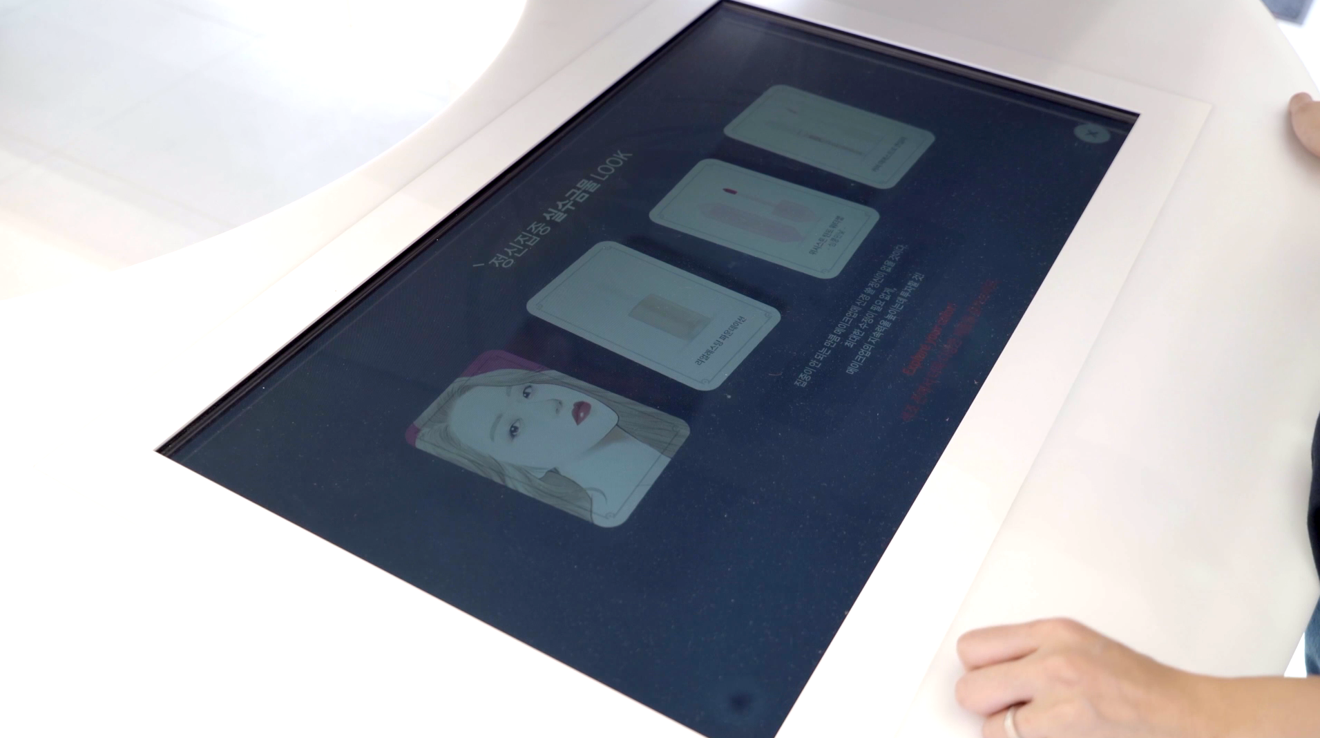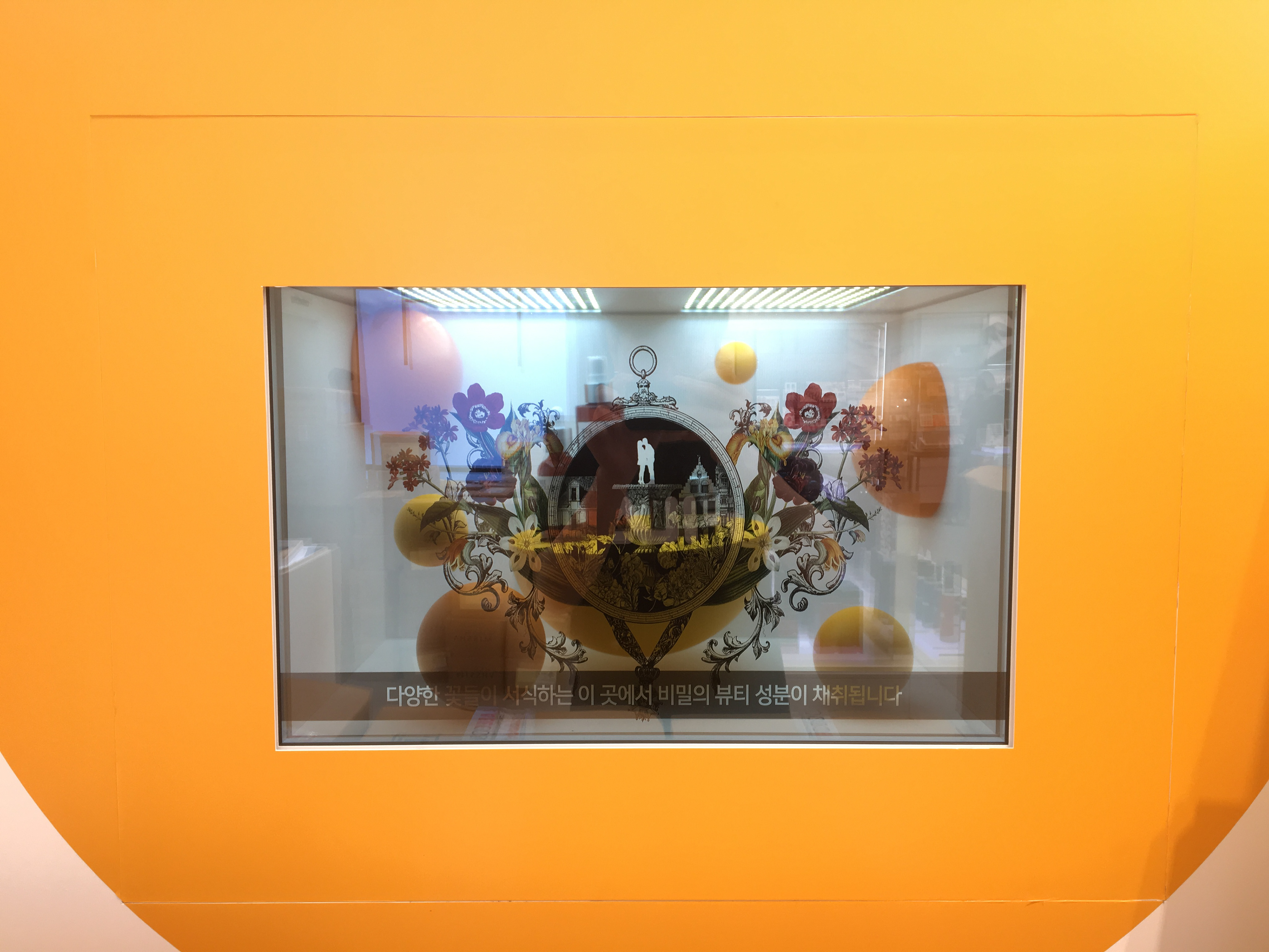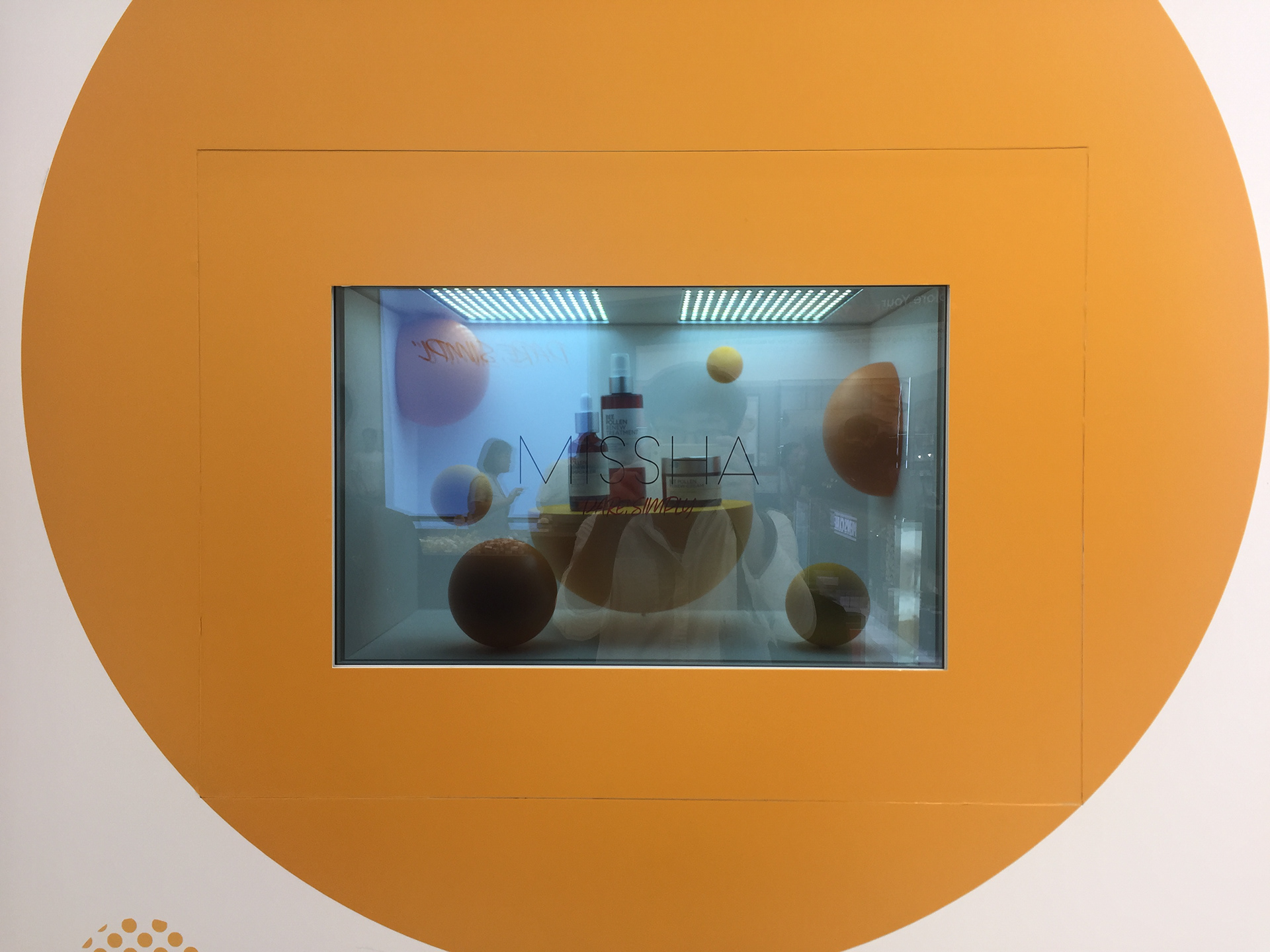 다양한 제품 전시와 정보를 동시에 확인 할 수 있는 투명디스플레이를 이용한 미디어입니다.