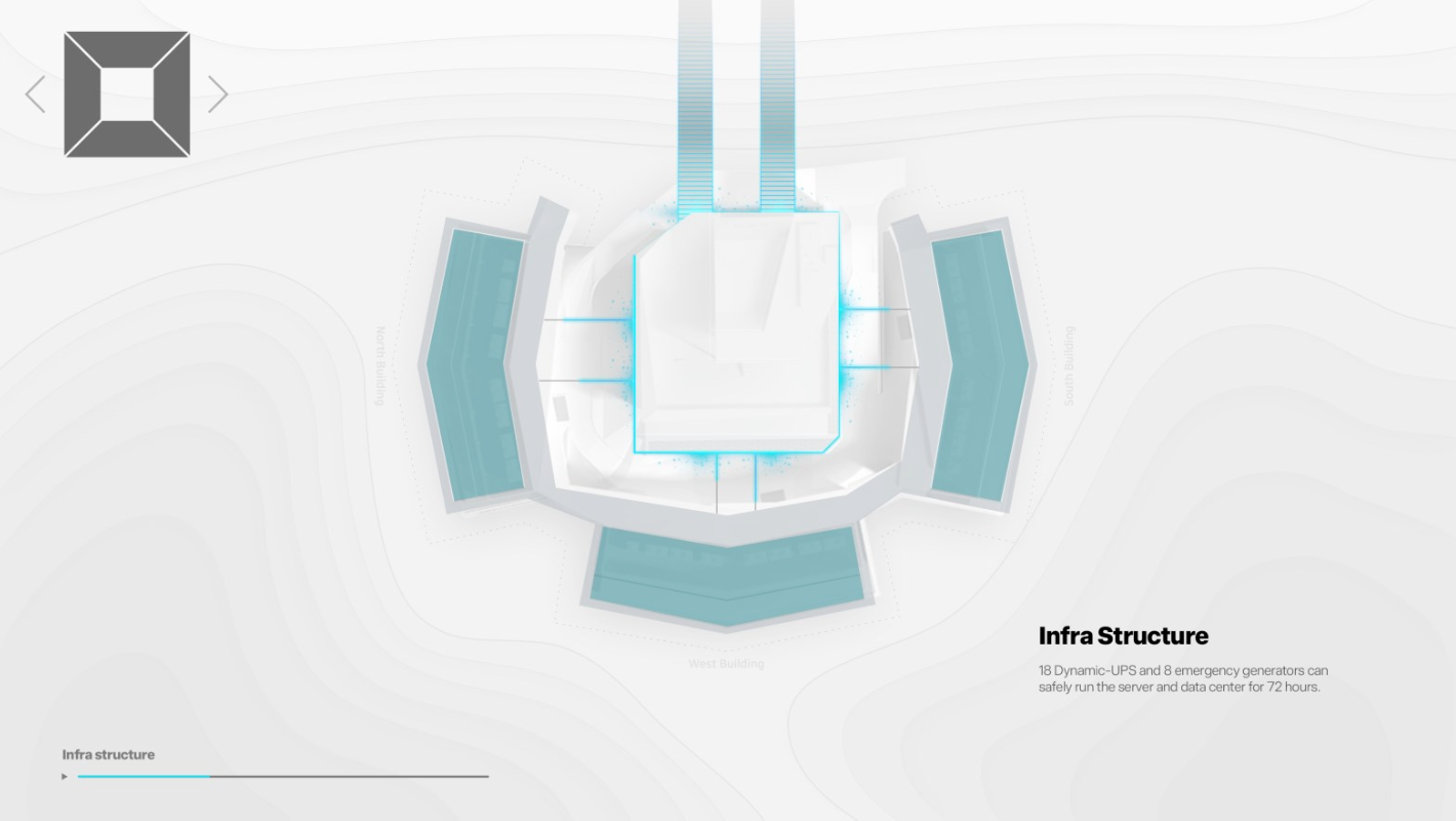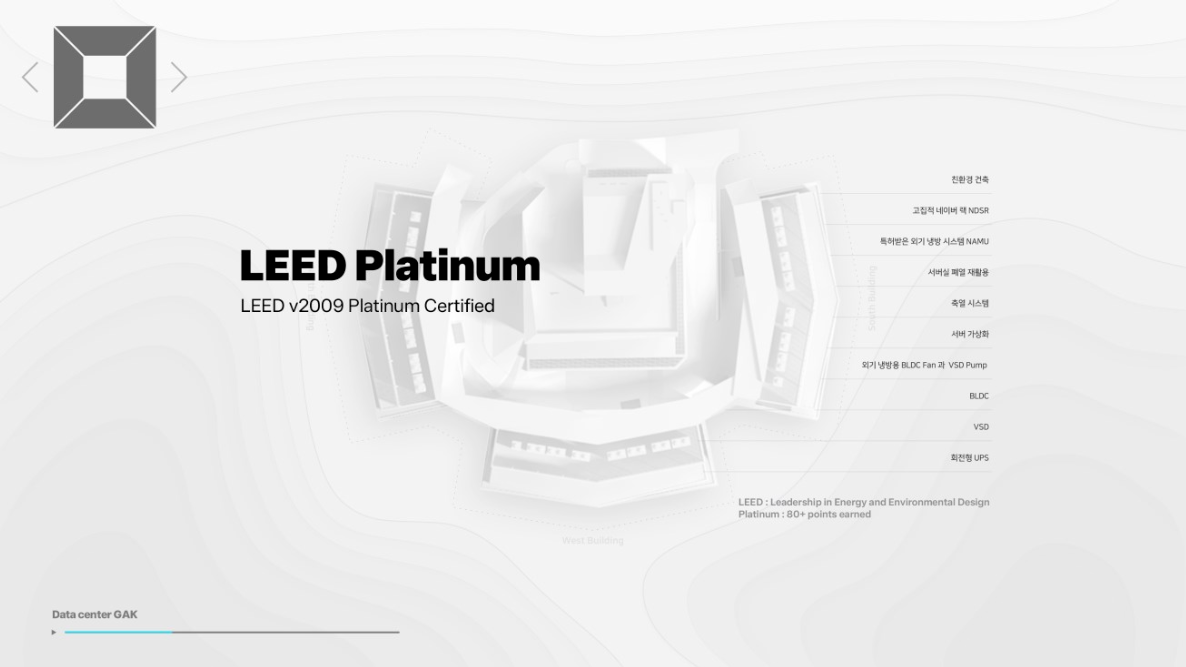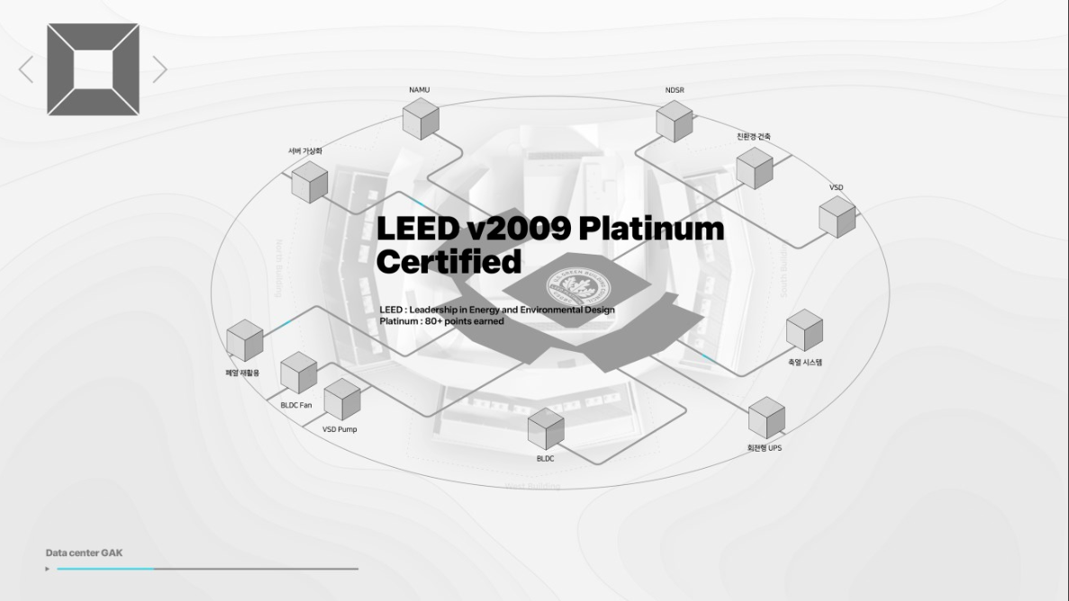 '각' 춘천 'Preview Room'은 데이터 센터의 '안전한 보존’과 ‘영원한 가치’의 철학과 친환경과 미래지향적인 이미지를 방문객들에게 보여주기 위해 마련된 공간입니다. VINYL-IX는 공간적 목적성을 감안 '각'이 내포하고 있는 브랜드 정신과 가치를 체험할 수 있는 미디어들로 특별한 공간으로 만들었습니다.