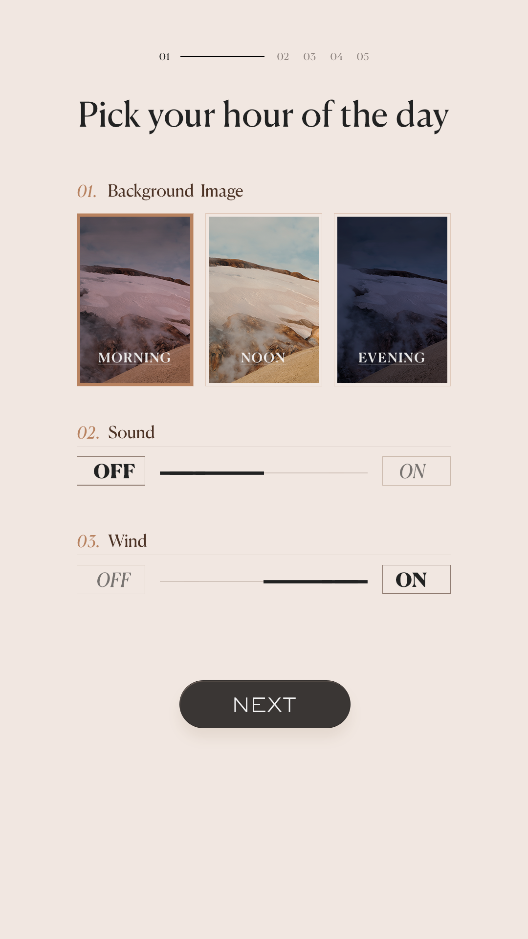 Morning, Noon, Evening 세 개의 테마에 따라 조명과 사운드, 배경이 변경되고, 윈드 머신과 소품을 이용 자기만의 특별한 사진을 촬영하여 SNS에 공유할 수 있습니다.