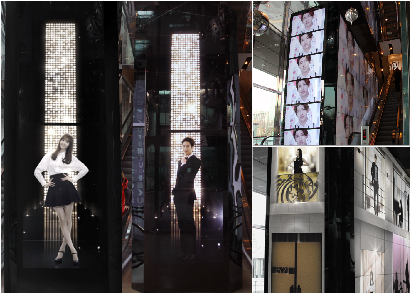 입구 에스컬레이터 사이에 설치된 약 50대의 모니터는 아티스트들 다양한 모습으로 보여주기 위해 특별이 설계된 구조물입니다. 또한 방문객을 환영하는 공간이도합니다.